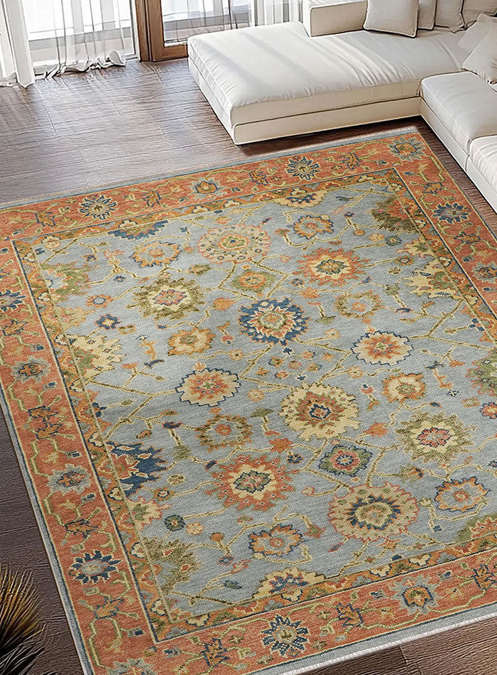 - Each rug is meticulously hand-knotted in India using 100% wool, a tribute to age-old artisan techniques passed down through generations