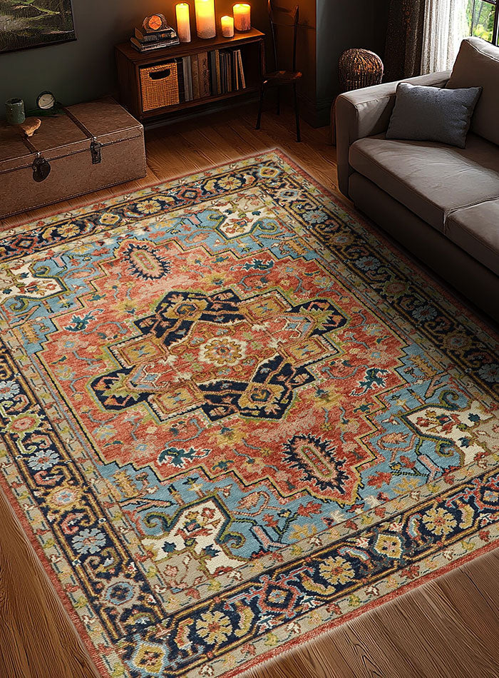 - Each rug is meticulously hand-knotted in India using 100% wool, a tribute to age-old artisan techniques passed down through generations